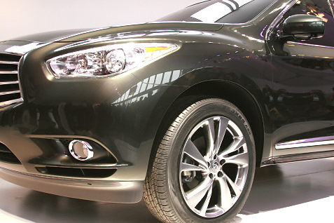 The Infiniti JX Concept is a preview of a new 7-passenger/3-row luxury crossover that joins the Infiniti lineup in spring 2012. The JX Concept was unveiled by Senior Vice President and Chief Creative Officer Shiro Nakamura: “The JX Concept advances the Infiniti design language, sharing design cues of the Infiniti Essence concept, yet interprets those elements in ways suitable to the needs of a family luxury crossover. From the dramatic front grille and headlight design to the crescent-cut D-pillar and greenhouse shape, the JX Concept shines as a fresh, bold alternative to the many flavors of vanilla currently dominating the three-row luxury crossover segment.”